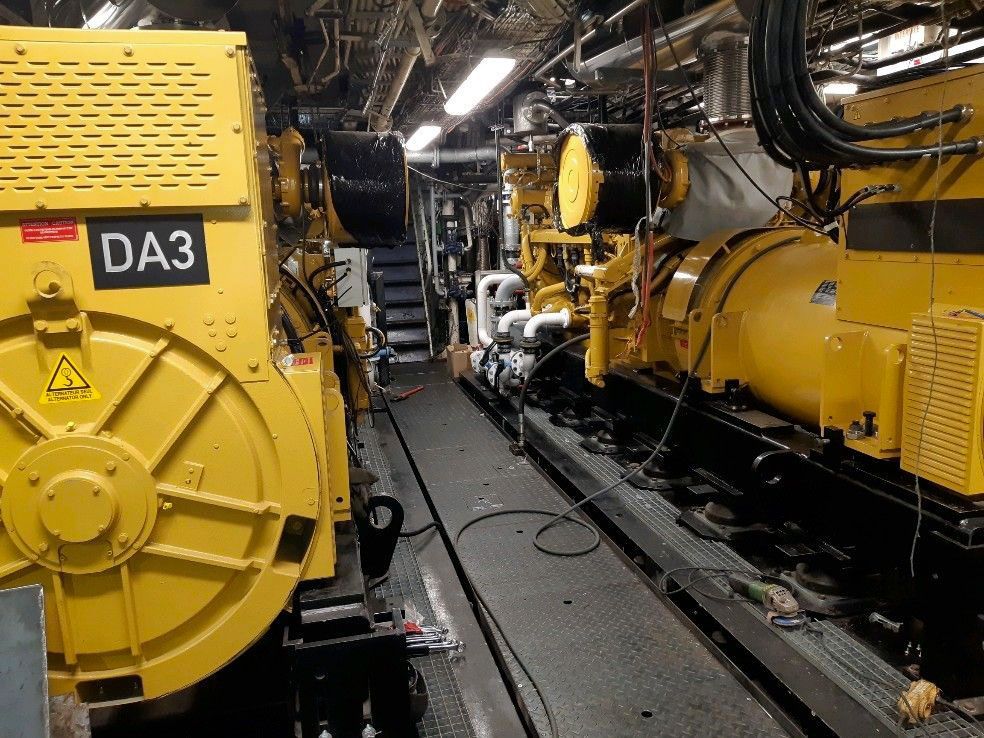 Ces groupes électrogènes sont équipés de systèmes post traitement SCR (Selective Catalytic Reactor) afin de répondre aux exigences IMOIII de l’annexe VI de la convention MARPOL. Une étude vibratoire poussée a été réalisée ainsi qu’une analyse modale en externe pour prédire les modes de structures des châssis et les vibrations transmises au navire. Afin d’être le plus discret possible, une double suspension a été mise en place.